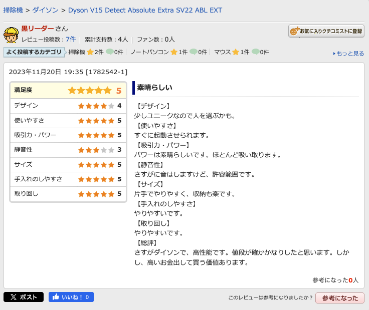 【総評】さすがダイソンで、高性能です。値段が確かかなりしたと思います。しかし、高いお金出して買う価値あります。